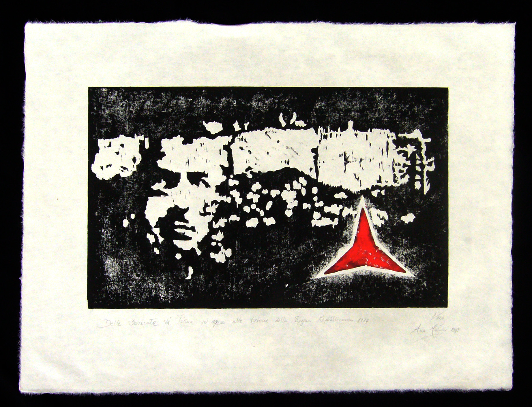 Tècnica: Xilografía sobre fusta impresa a dues tintes. Tintes linogràficas Lefranc i Bourgeois amb base d’aigua, paper Japó de gampi y cotó de 60 gr.